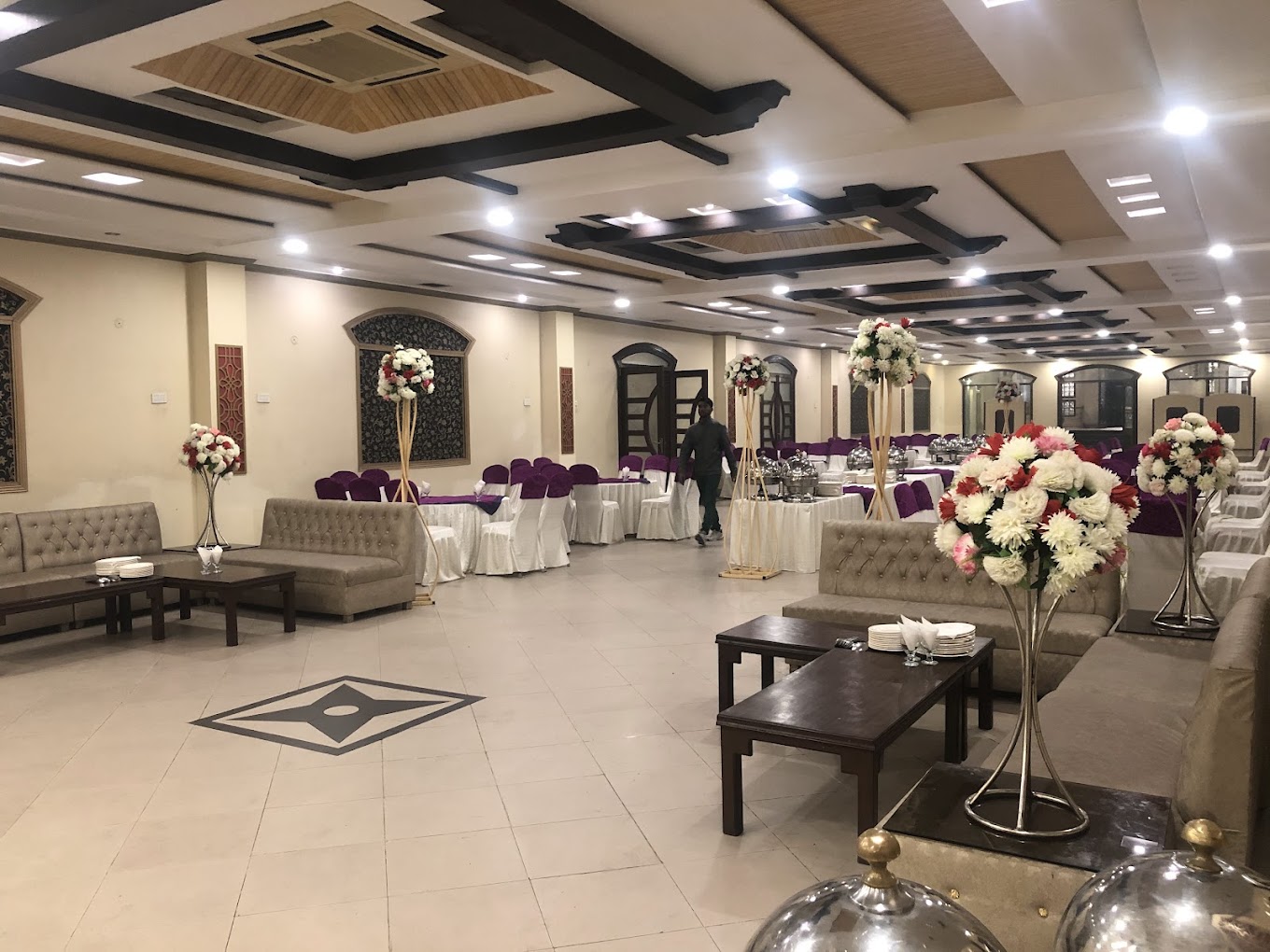A beautiful banquet hall is a stunning temporary structure that offers a perfect blend of elegance and versatility for outdoor events. With its graceful design, spacious interior, and translucent walls that allow natural light to filter through, it creates a charming, airy atmosphere. Ideal for weddings, parties, or corporate functions, a marquee can be customized with elegant drapes, lighting, and floral arrangements, providing a stylish setting that enhances any occasion. It’s the perfect choice for hosting events while maintaining a connection to nature, offering both comfort and sophistication in an open-air setting.